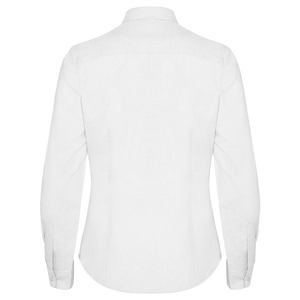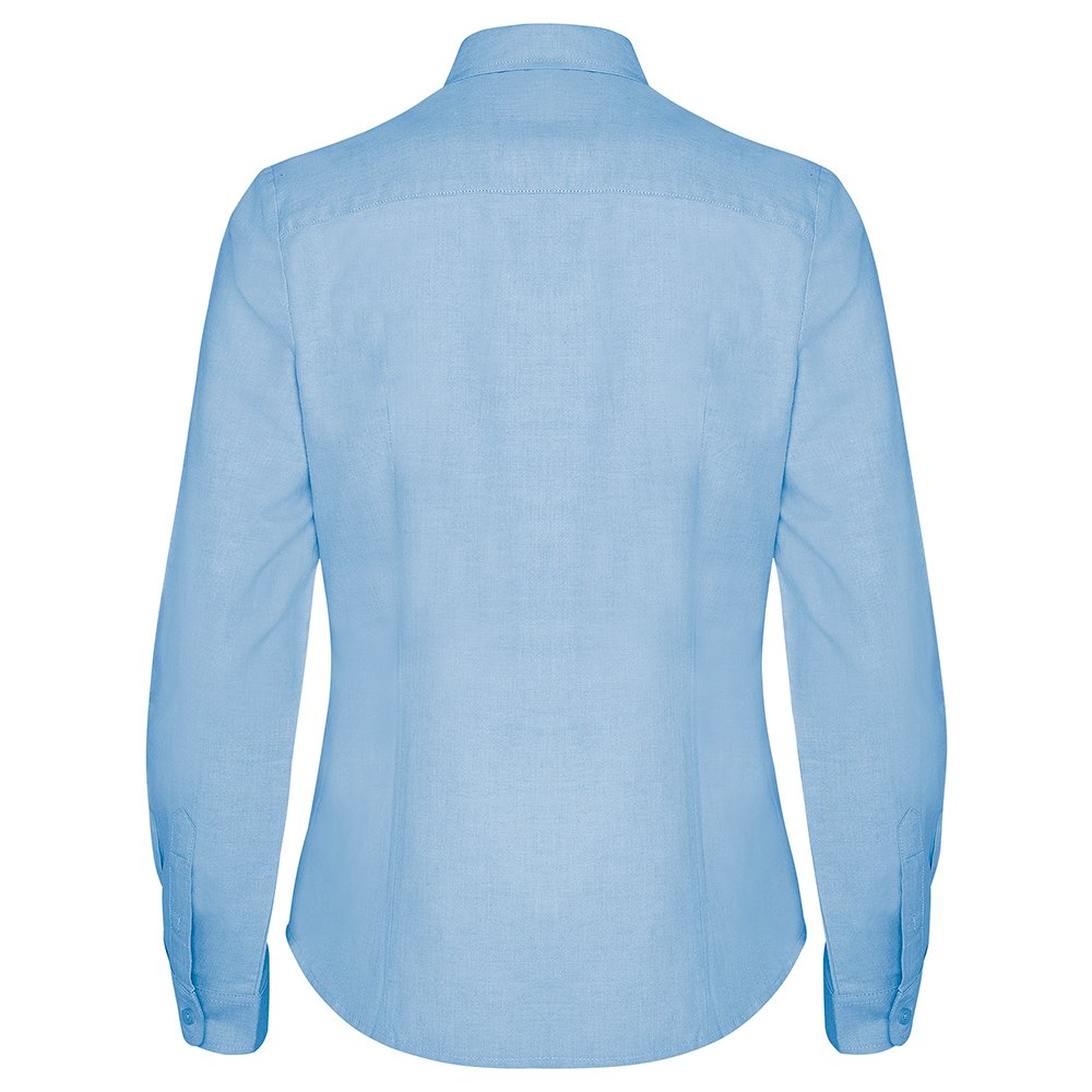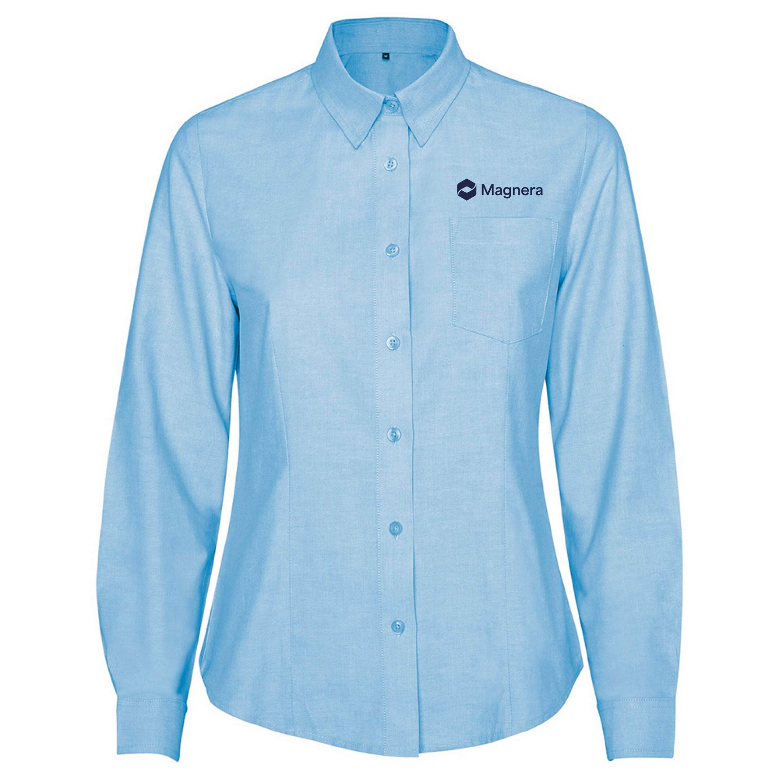 Long-sleeve women shirt made from breathable Oxford fabric blend (70% cotton / 30% polyester, 140 g/m²) for all-day comfort and easy care. Details include a left chest pocket and two-button cuffs with dart accents.