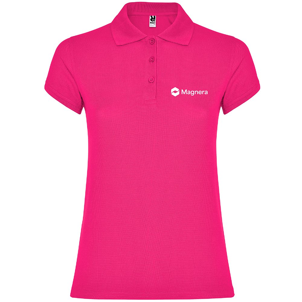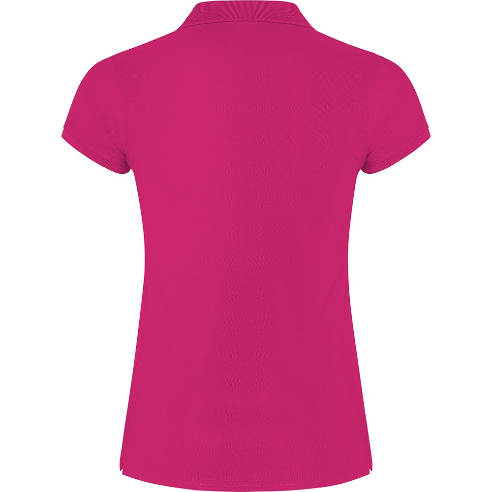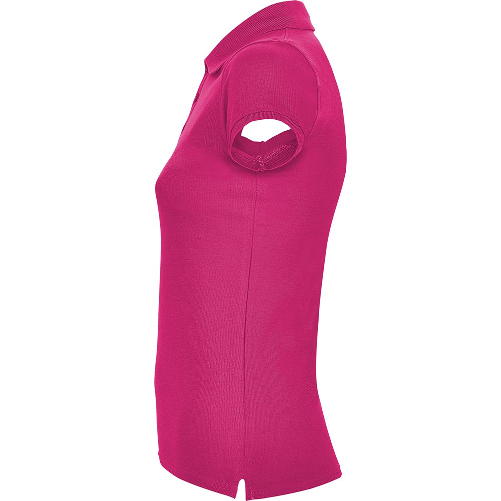 Women’s polo shirt crafted from 100% cotton piqué (200 g/m²), featuring a fitted cut with side seams for a flattering silhouette. Designed for comfort and durability, it includes reinforced, covered seams inside the collar. The 1×1 ribbed collar and cuffs add a classic touch, while the narrow 3-button placket and side slits provide ease of wear.