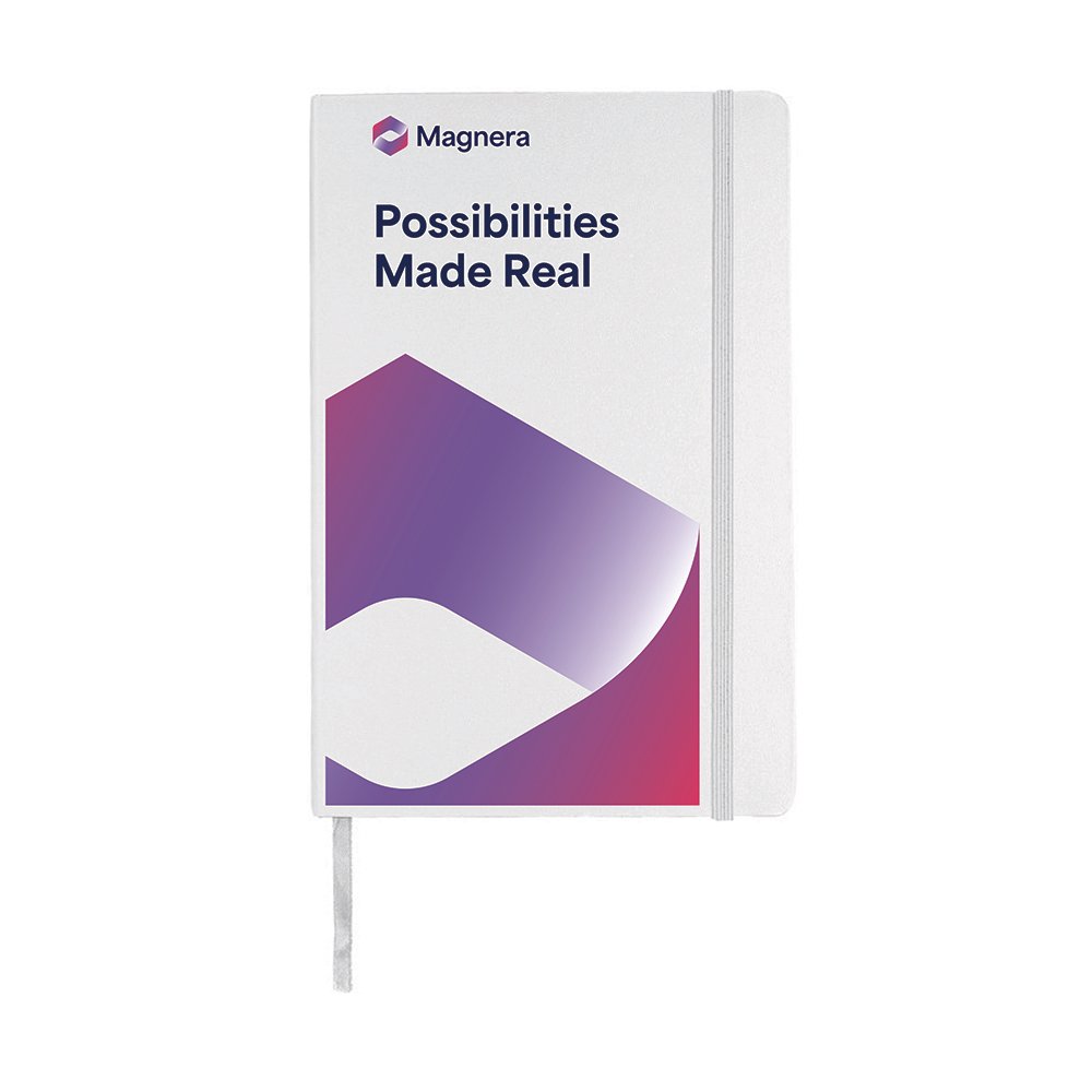 Elegant A5 notebook with durable hardcovers, elastic closure, and 80 sheets of FSC-certified lined paper (80gsm). Includes a rear expandable pocket for storing loose notes, receipts, or cards. Presented in a sleek JournalBooks gift box sleeve.