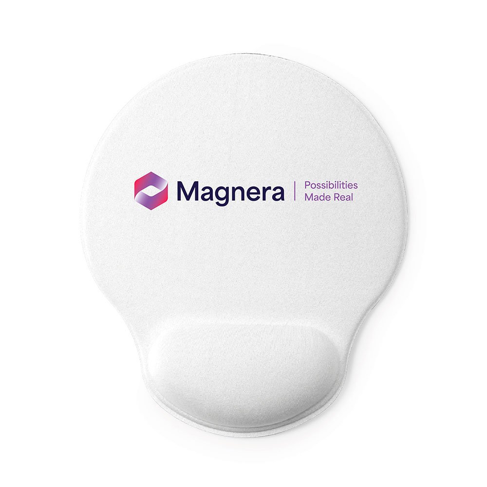 Soft polyester mouse pad with non-slip silicone base for stability and a padded wrist cushion to reduce stress and prevent discomfort.