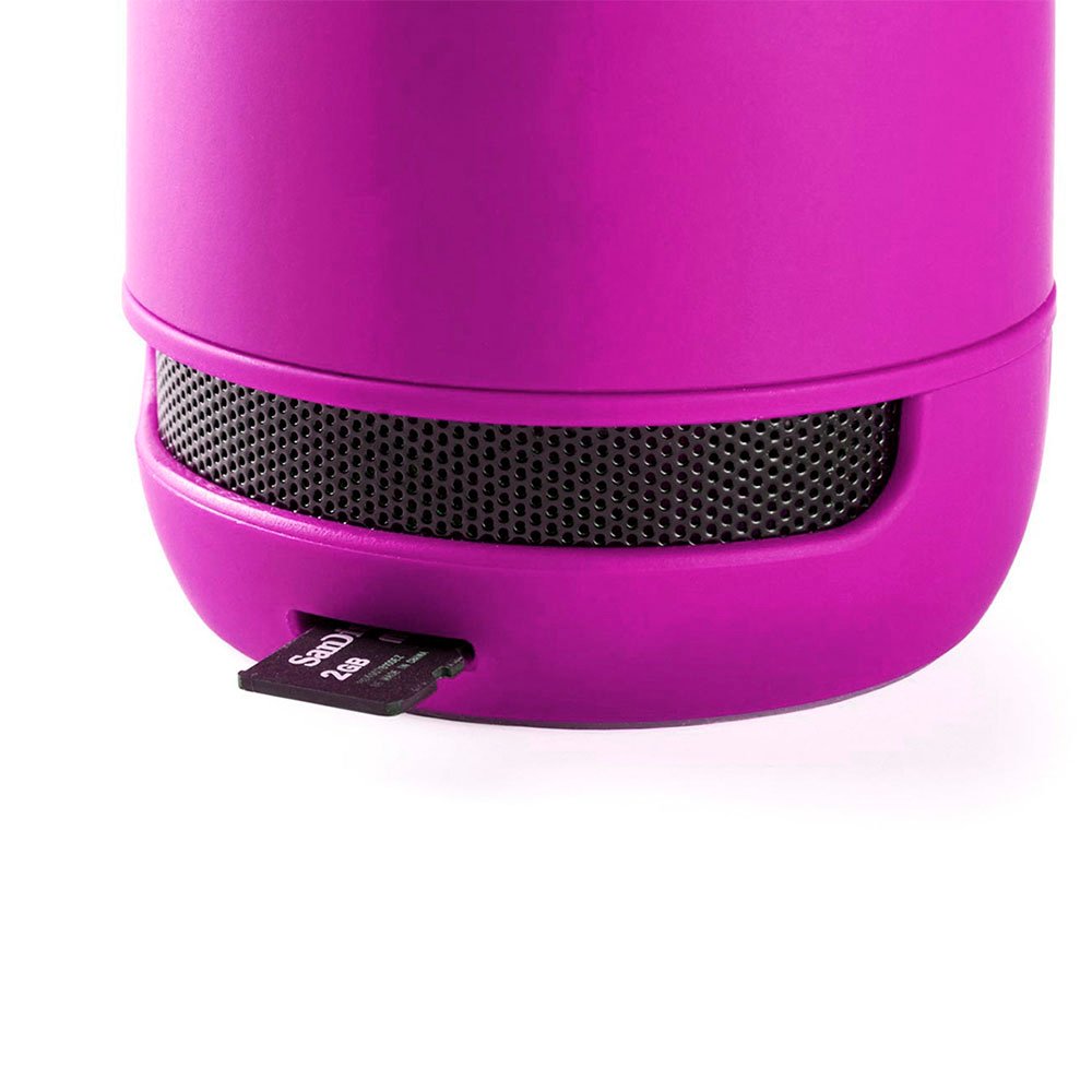Compact speaker with Bluetooth® 5.0 connection delivering 3W of clear sound output. Designed for a complete audio experience, it features hands-free calling and multiple connectivity options. Includes a micro SD card reader (supports up to 32GB) a 3.5mm auxiliary input, and is fully compatible with both iOS and Android devices. With 200mAh battery, including charging cable and 3.5mm auxiliary jack cable.