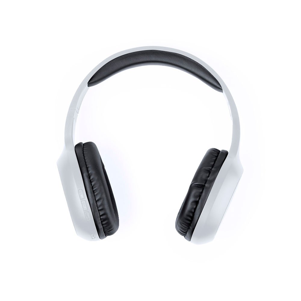 Wireless Bluetooth® 4.2 headphones with a sleek white finish and chrome accents. Soft, rubberized-touch and padded PU leather ear pads provide an ergonomic fit. Built-in control panel allows easy music and call management, including hands-free functionality. Includes 3.5mm jack cable and a rechargeable 150 mAh battery, with micro USB charging cable.
