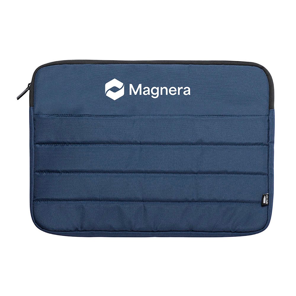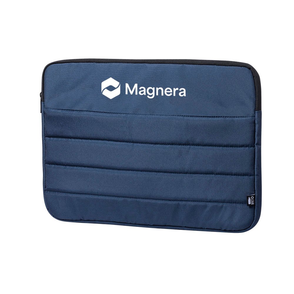 Sustainable laptop sleeve made from durable 300D RPET with full protective padding. With a modern urban and sustainable design, ideal for laptops up to 15″. Includes a main zippered compartment with a metal pull tab for secure and easy access. Finished with an RPET label.