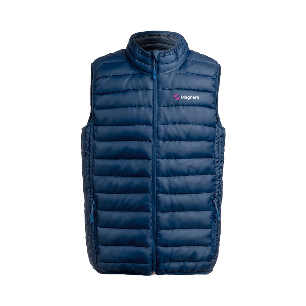 Unisex lightweight vest crafted from warm, soft 100% polyester with inner padding for added insulation. Both windproof and waterproof, it includes a full front zipper with a puller strap, a high collar with flap, and spacious side pockets with pull tabs. Includes a practical polyester carrying pouch for easy transport.