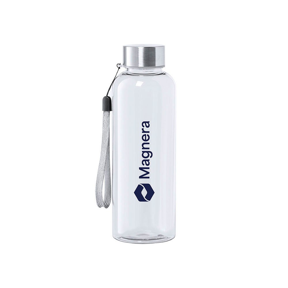500ml BPA-free bottle made from durable, transparent Tritan, offering excellent heat resistance and long-lasting clarity. It features a stainless steel screw-on cap with a built-in lanyard for easy carrying.