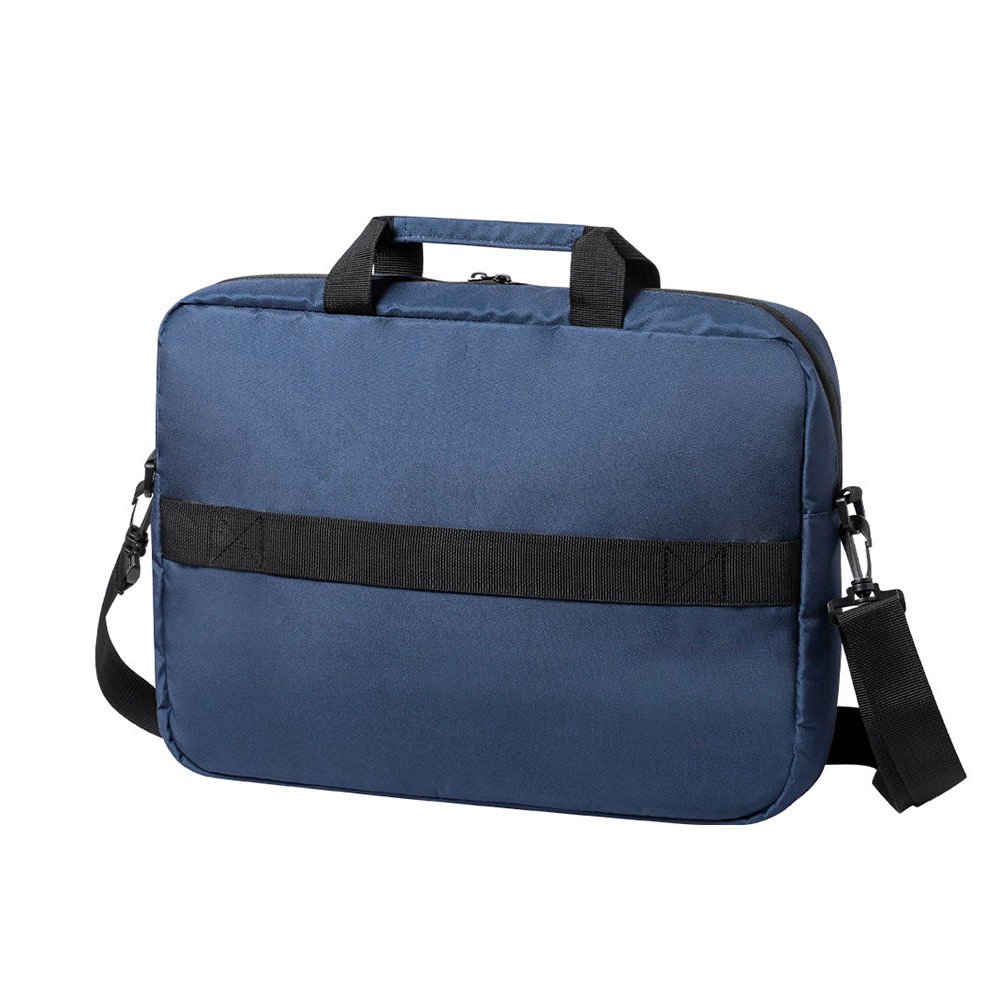 Urban-style briefcase made from durable 300D RPET, sourced from recycled plastic. Full padding design for protection and comfort. Features a padded laptop compartment (fits laptops up to 15″), trolley sleeve, and a main zippered pocket with a metal puller. Comes with reinforced carry handles and a padded, adjustable shoulder strap with swivel carabiner clips for easy carrying. Finished with an RPET label.